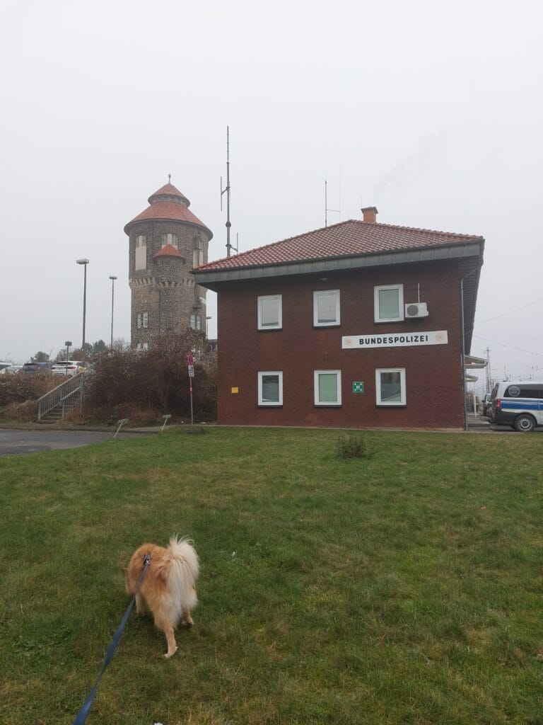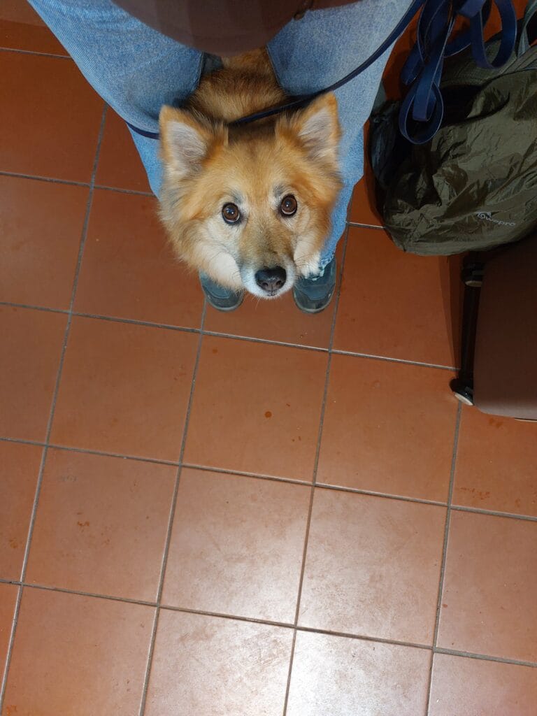 - Muilkorf om kunnen hebben. We hebben dit zelf niet nodig gehad in Duitsland (ook al stond het wel aangegeven), maar dit kan ook komen omdat ze kleiner is en een ‘’vriendelijk’’ uiterlijk heeft (oortjes plat, kwispeltje en fluffy helpt! 🧡). Alsnog is het wel handig dat je hond dit om kan hebben indien het wel nodig / verplicht is.