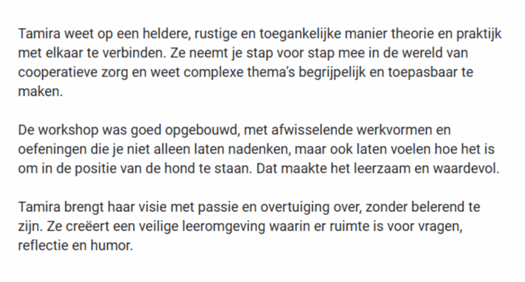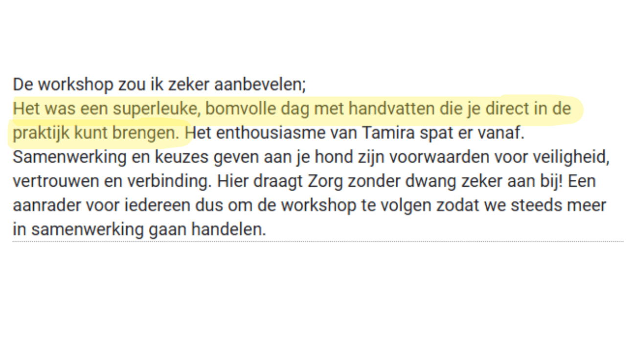 Reviews van eerdere hondenprofessionals die de workshop eerder hebben gevold